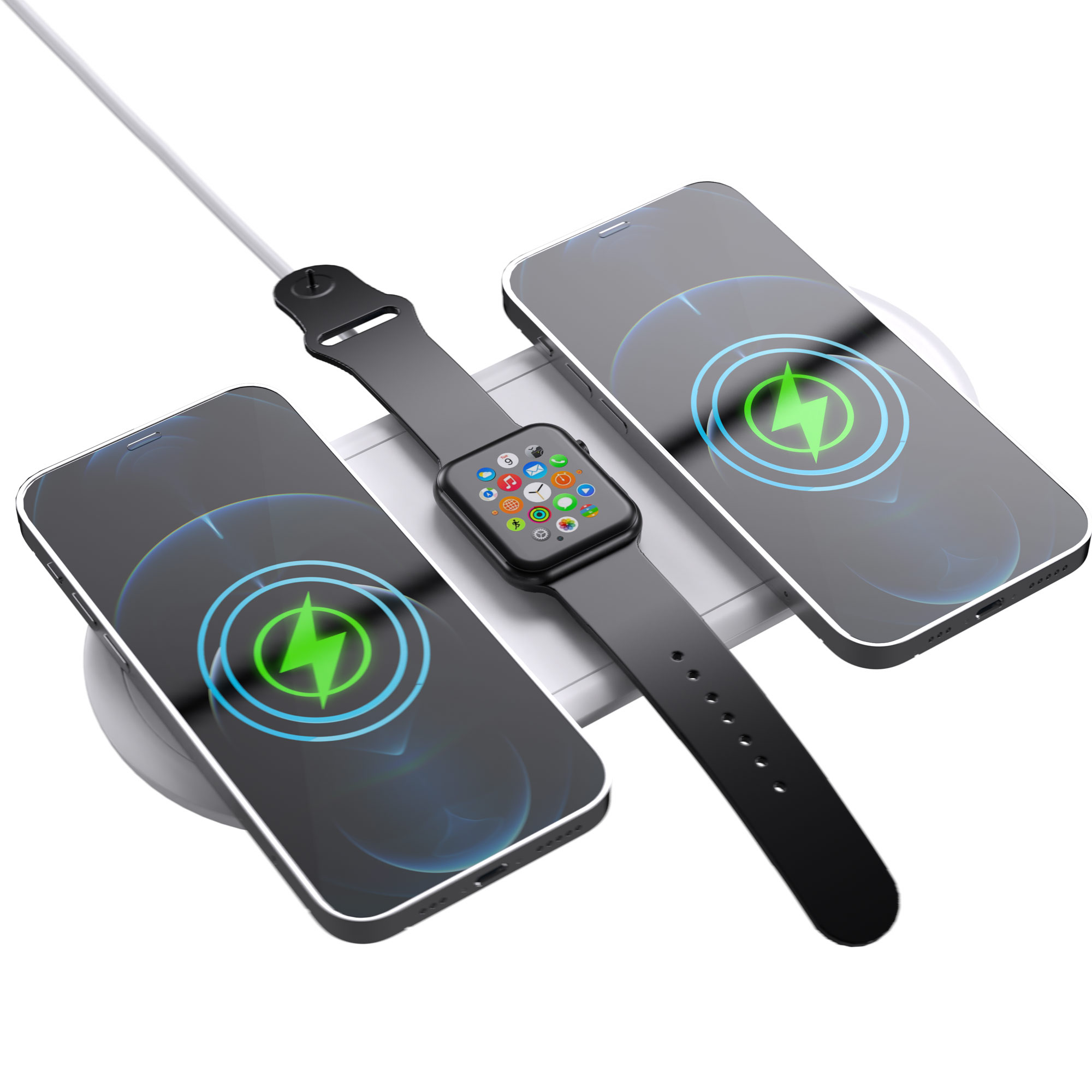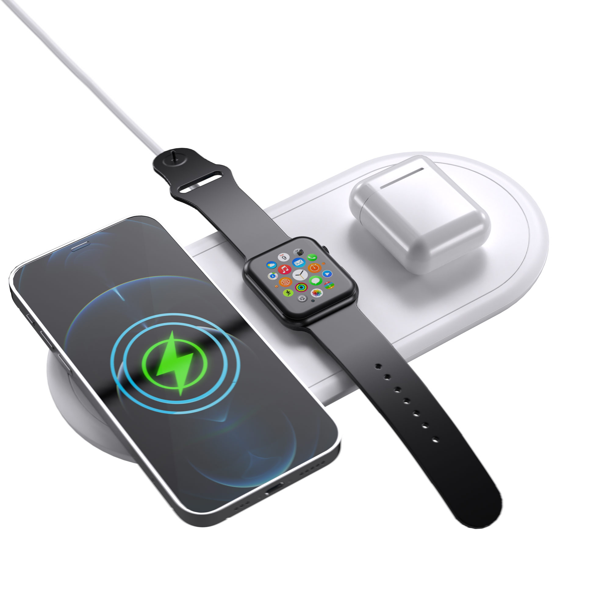 • Charge Phone, Earbuds and Apple Watch. Can also charge two phones at once!